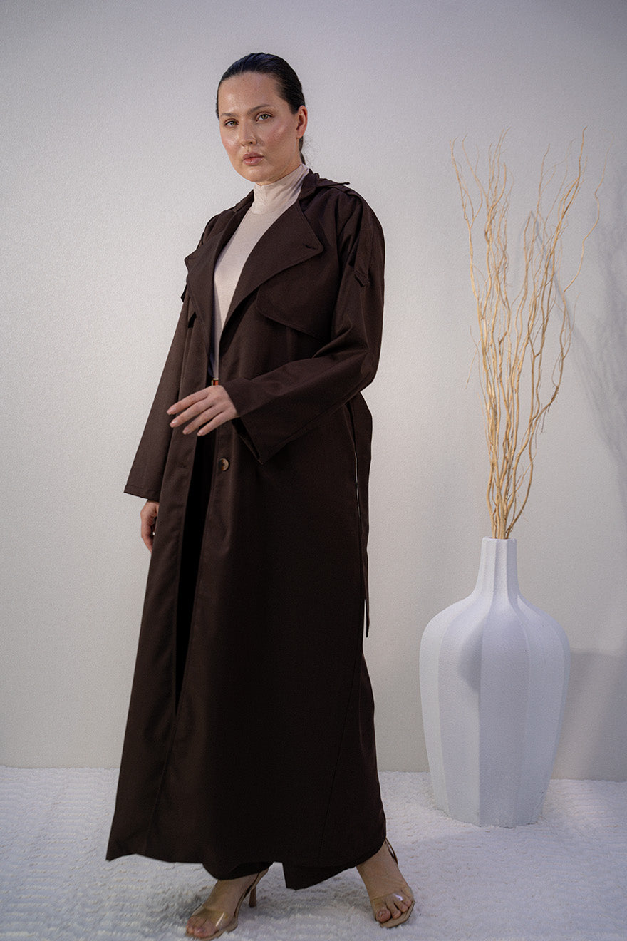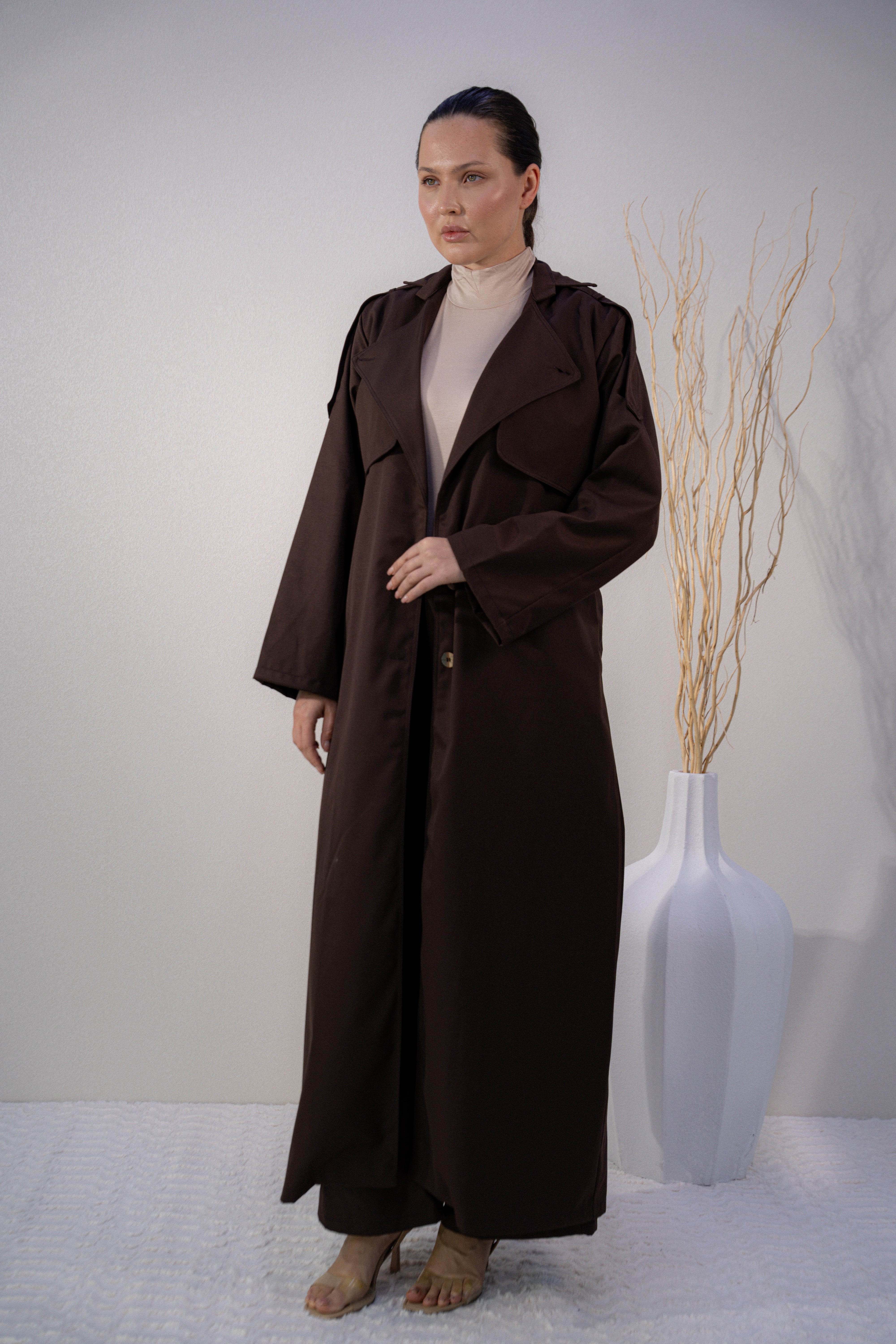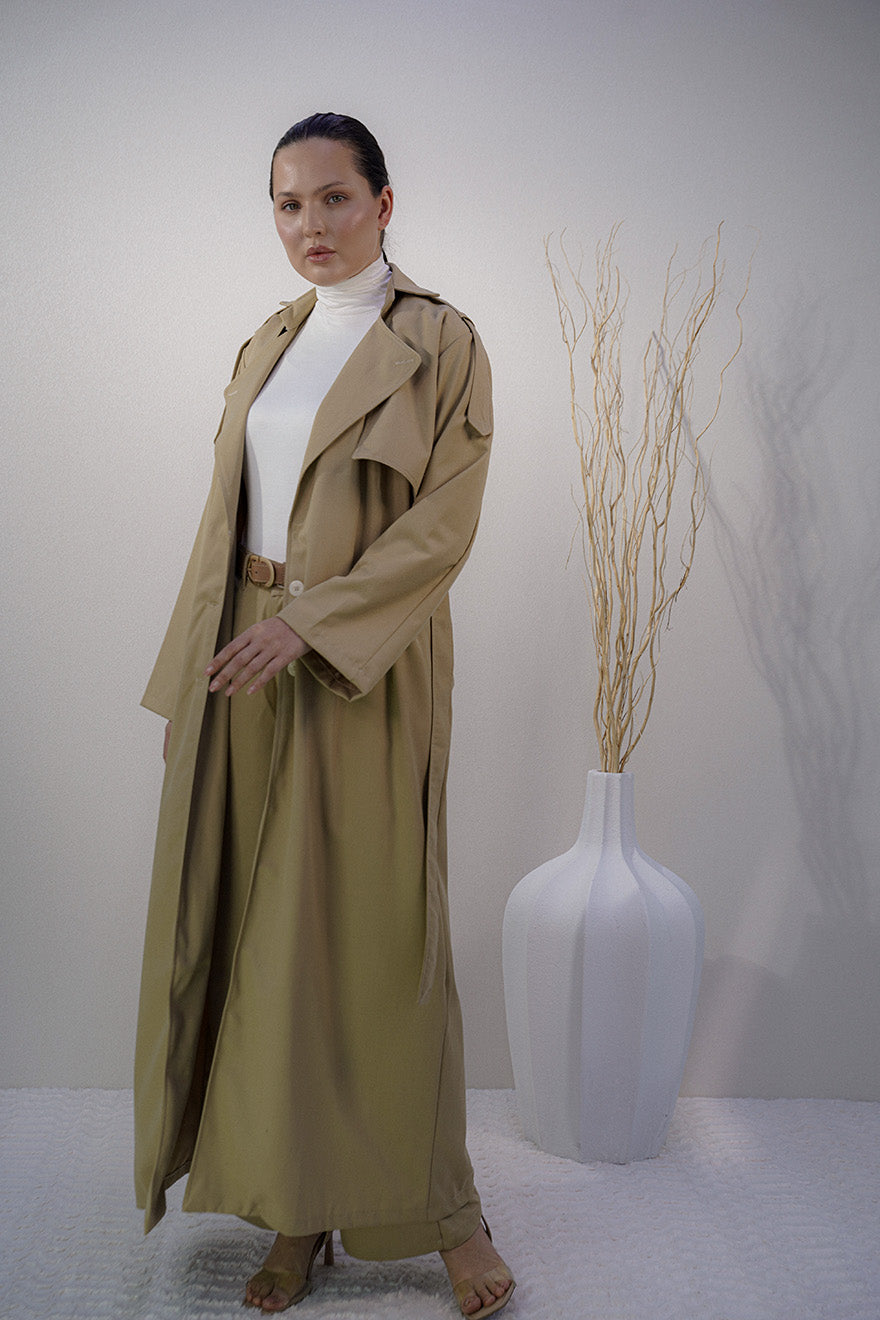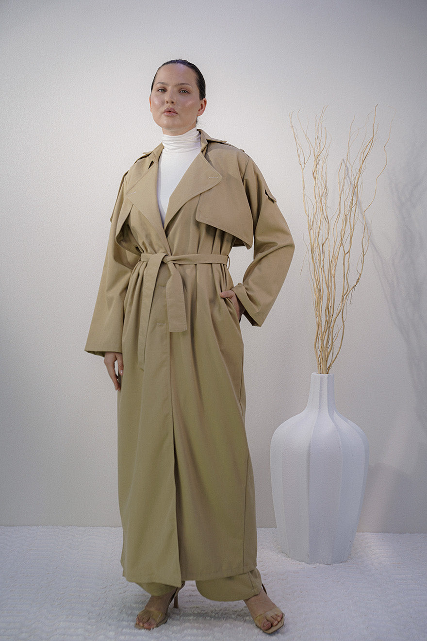 ترانش عبايا : كوت طويل مصنوع من قماش الكتان الطبيعي،