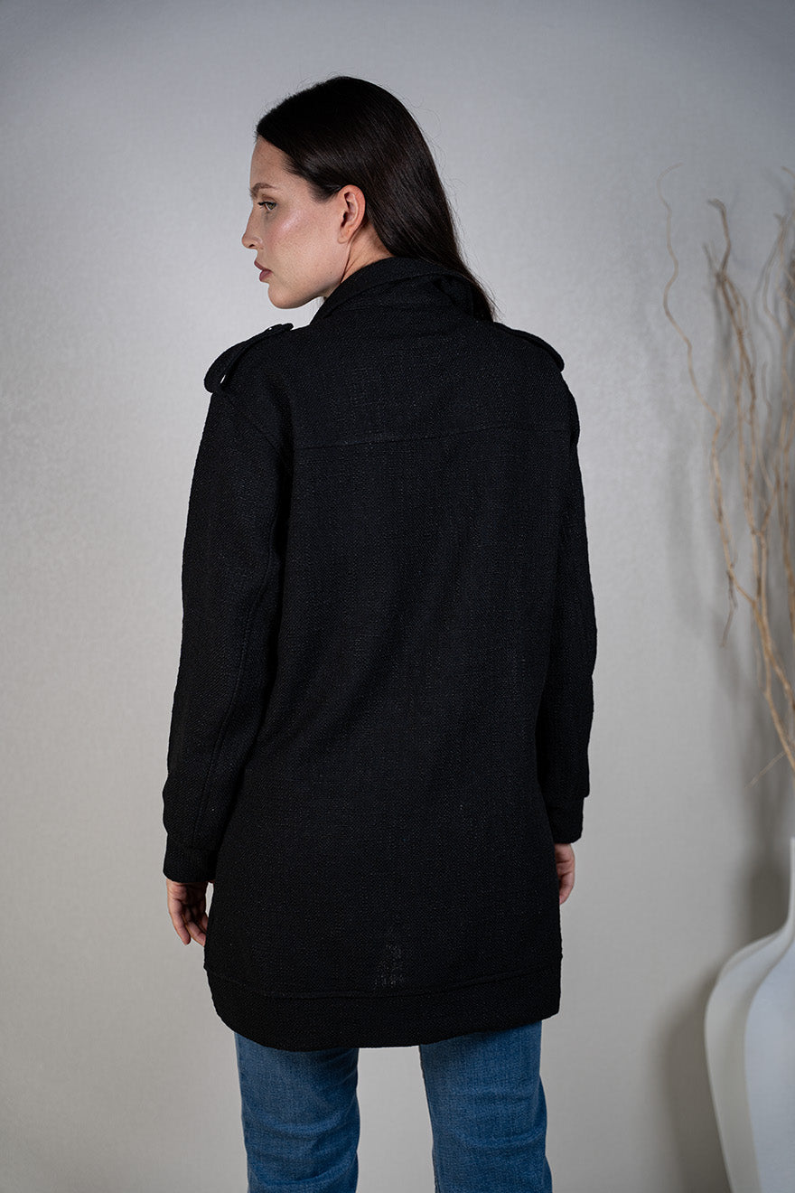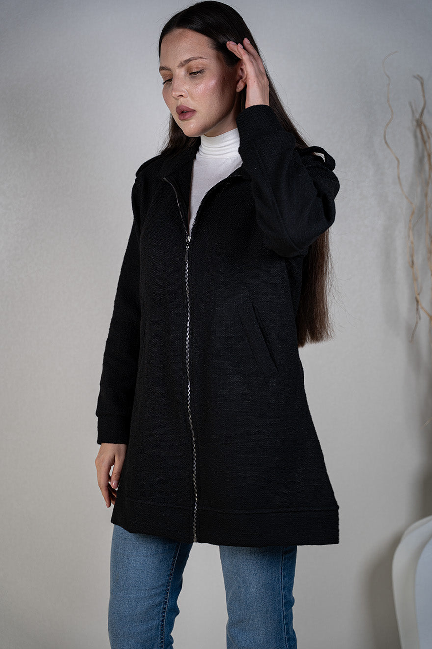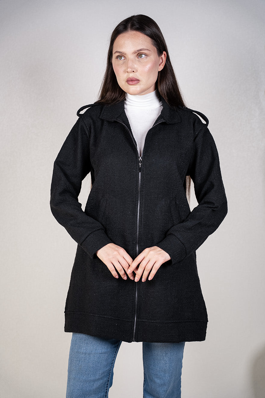 جاكيت متوسط الطول مصنوع من الصوف بخامة قطنية فاخرة تمنحك دفئاً مريحاً ومظهراً راقياً في آن واحد. بتصميم أنيق وتفاصيل بسيطة تعكس الذوق العصري، ليكون خياراً مثالياً لإطلالات الشتاء اليومية والرسمية. خامته الناعمة وجودته العالية تضيف لمسة فخامة تجعل الجاكيت قطعة أساسية في خزانة الشتاء.