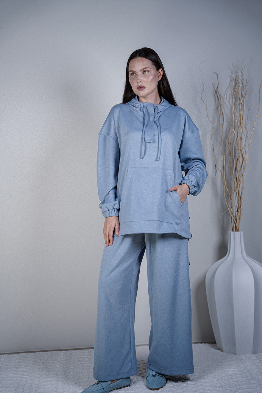 سوت قطني أنيق وفضفاض، يمنحك راحة مثالية طوال اليوم. مصنوع من خامة فاخرة عالية الجودة، تصميمه المحتشم يجعله مثالياً للمحجبات، كما أن قصته الفضفاضة تجعله خياراً عملياً للسفر والتنقلات اليومية. يجمع بين الأناقة والراحة في قطعة واحدة تناسب إطلالاتك العصرية والمريحة.