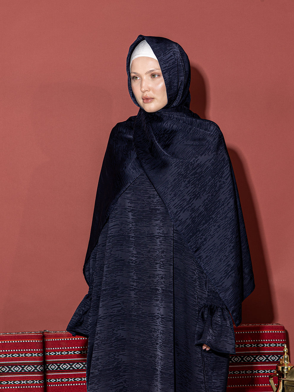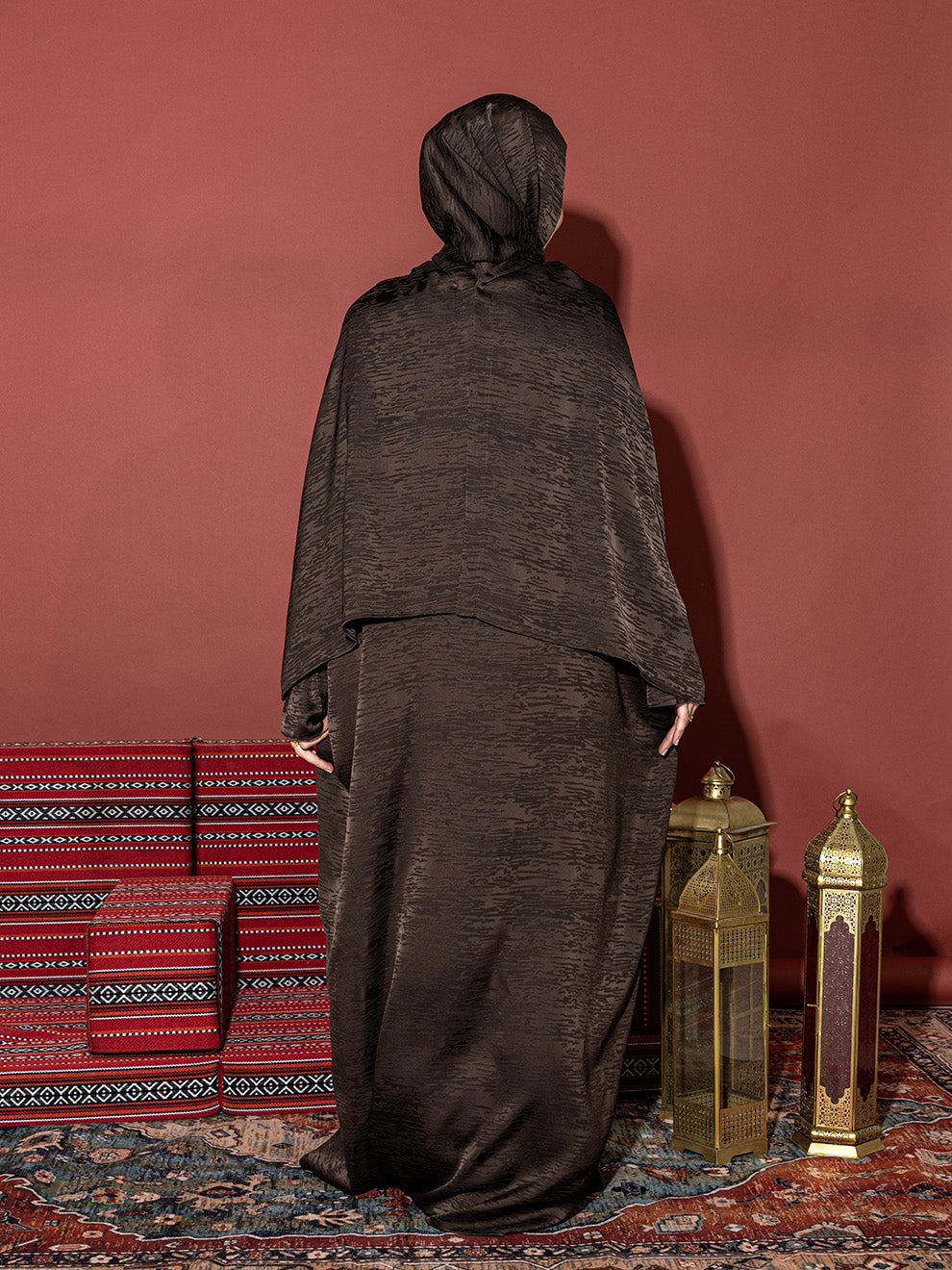 استمتعي بالأناقة والراحة مع طقم الصلاة الفاخر لدينا، المصنوع من مزيج ناعم من الحرير والقطن لملمس ناعم وجيد التهوية. يتميز بقصة واسعة وانسيابية وحجاب متصل به، مزود بماغنيت قوي من الخلف مما يضمن سهولة الارتداء ومظهرًا أنيقًا. مما يجعله الخيار الأمثل للمساجد، والتجمعات الرمضانية، والحج، والعمرة.