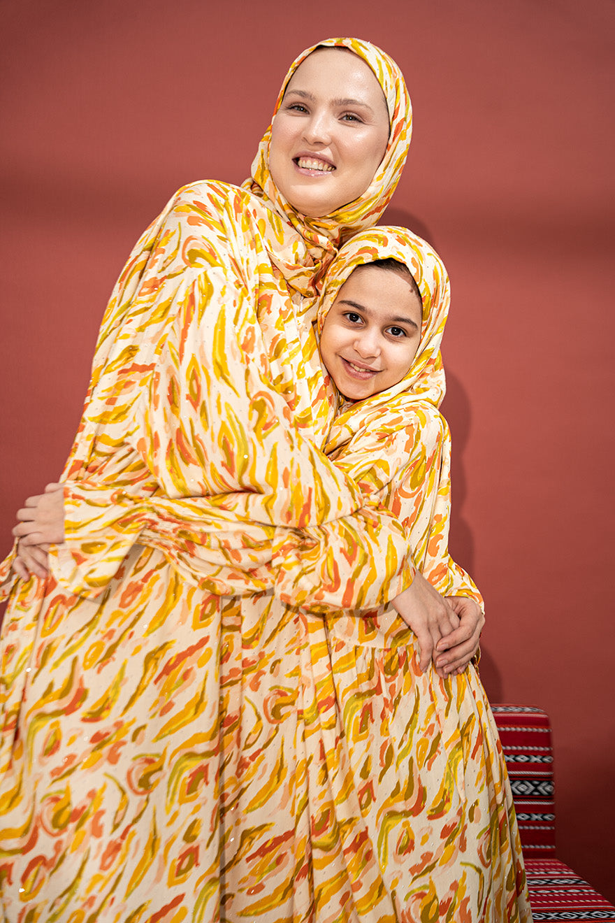متوفر بمقاسات تناسب الأم والبنت، ليكون خيارًا مثاليًا لإطلالة متناسقة وأنيقة تجمع بين الراحة والاحتشام في المنزل أو أثناء أداء الصلاة.