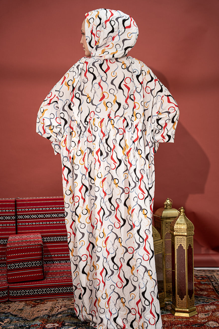 لباس صلاة أنيق وعصري مصنوع من قماش الفيزكوس الناعم عالي الجودة، يتميز بخفة الوزن والتهوية الممتازة ليمنحك راحة تامة أثناء الصلاة والاستخدام اليومي. يأتي بتصميم واسع وانسيابي يوفر تغطية كاملة مع نقشة عصرية بألوان دافئة تضيف لمسة أنثوية راقية.